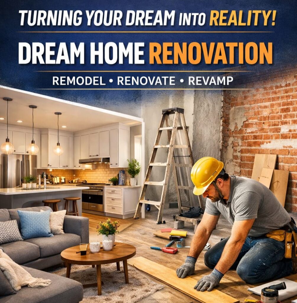 At Dream Home Renovation, we specialize in transforming old, outdated spaces into modern, beautiful, and comfortable homes. With quality craftsmanship, smart designs, and attention to detail, we make sure every renovation reflects your lifestyle and vision.